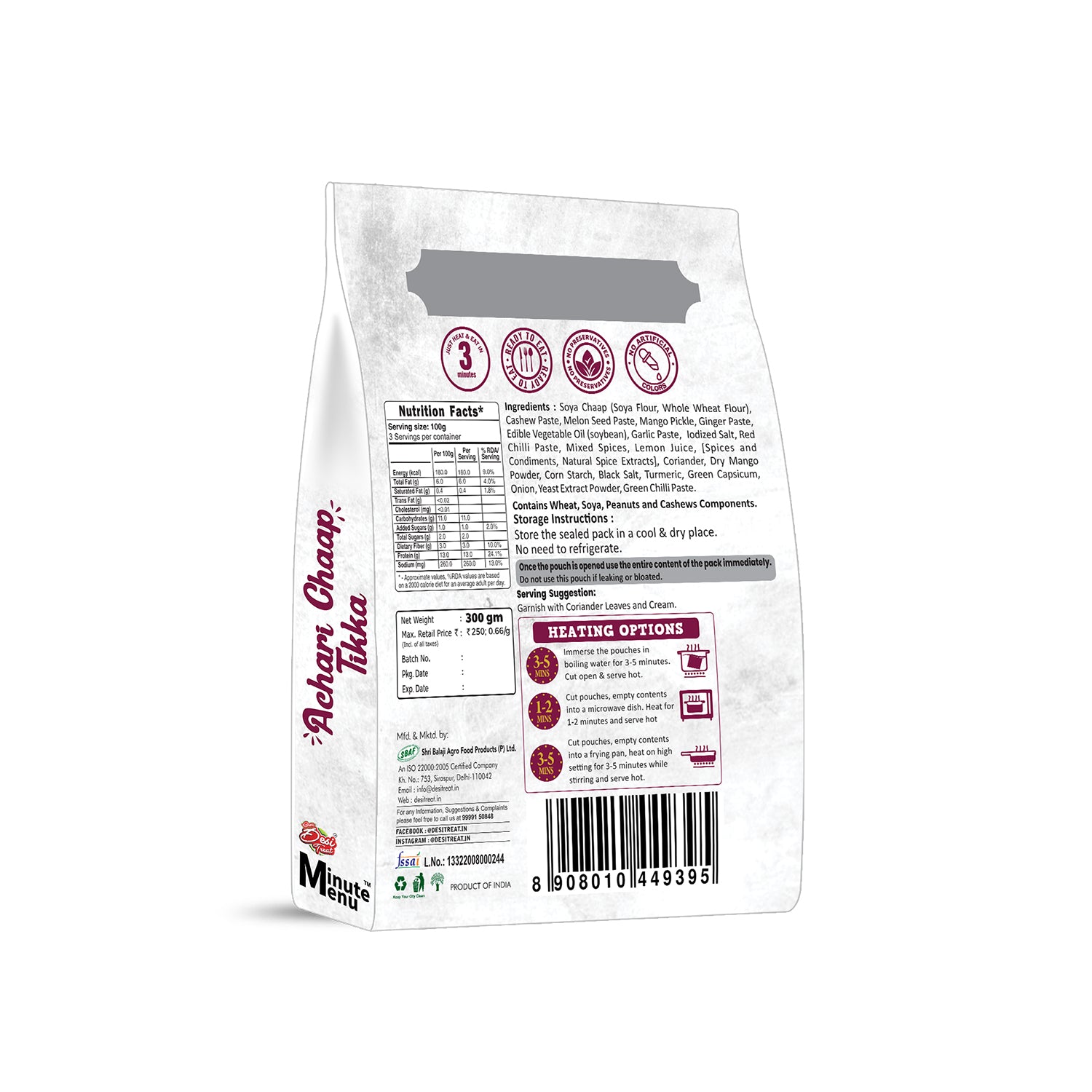 Quick, Easy, and Delicious! : Craving a burst of flavor? Our Achari Chaap Tikka is here to satisfy. Simply heat and eat in 3 minutes, and savor the authentic taste of Indian street food.