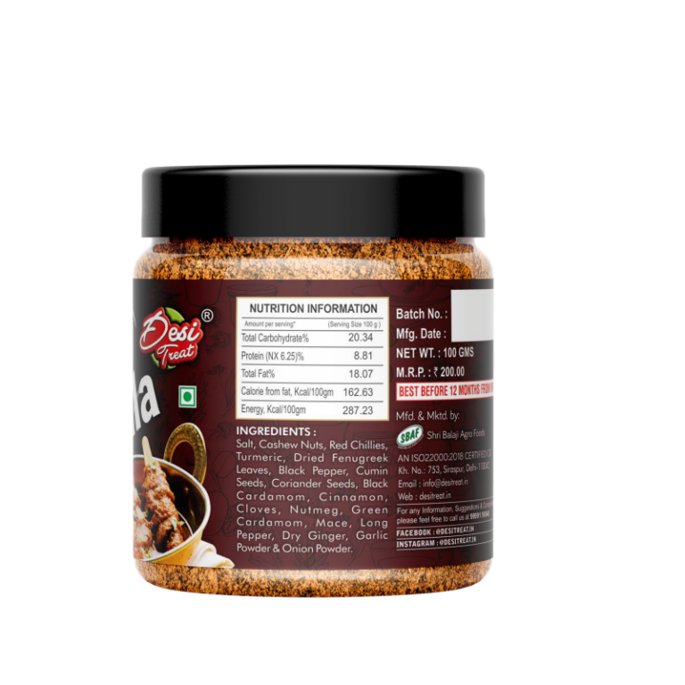 Desi Treat Soya Chaap Masala: Experience the authentic taste of Punjabi tradition with our premium soya chaap masala. This versatile spice blend is perfect for any recipe, from kebabs to curries. Elevate your vegetarian dishes with the rich, flavorful aroma and bold taste of our authentic masala.