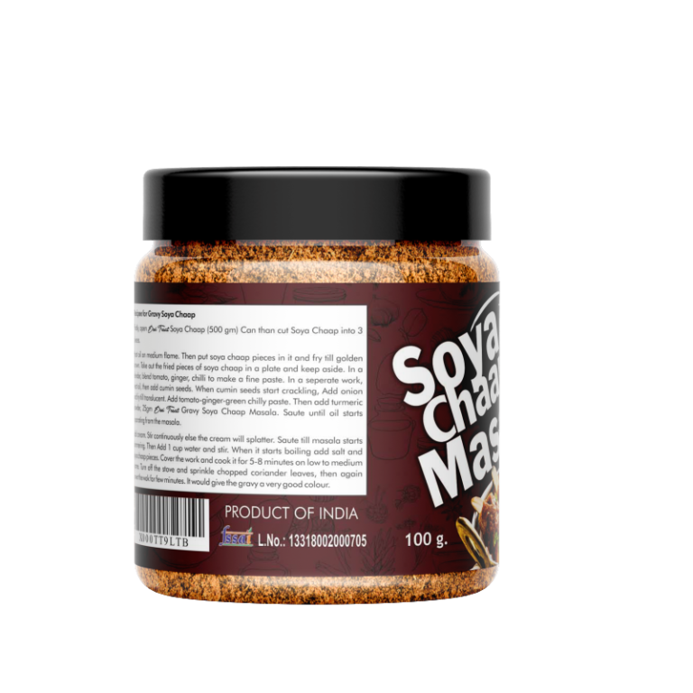 Natural Flavor:Enjoy the pure, unadulterated taste of our Soya Chaap Masala, free from artificial flavors and preservatives.