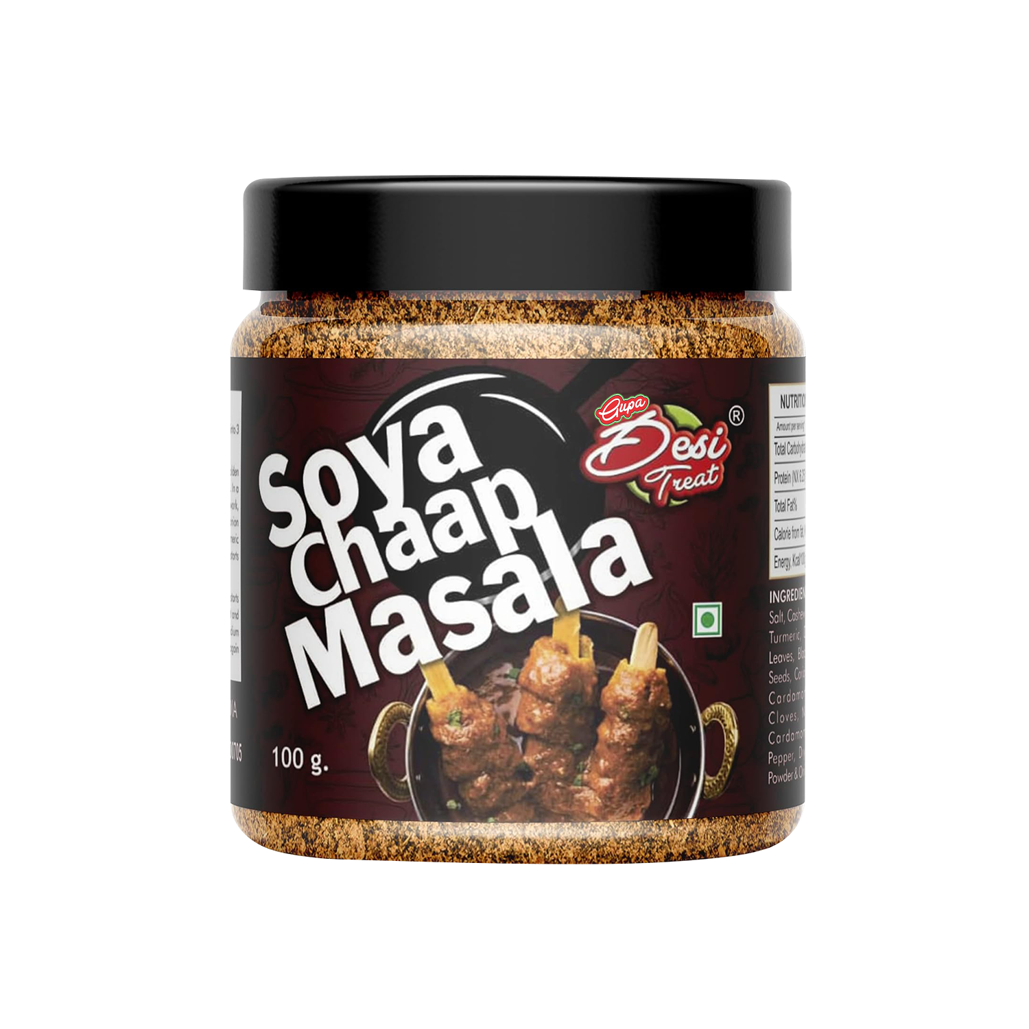 Desi Treat Soya Chaap Masala: Elevate your culinary creations with this premium masala blend, specially crafted for soy chaap. Experience the perfect balance of flavors that will transform your vegetarian dishes into something truly exceptional.