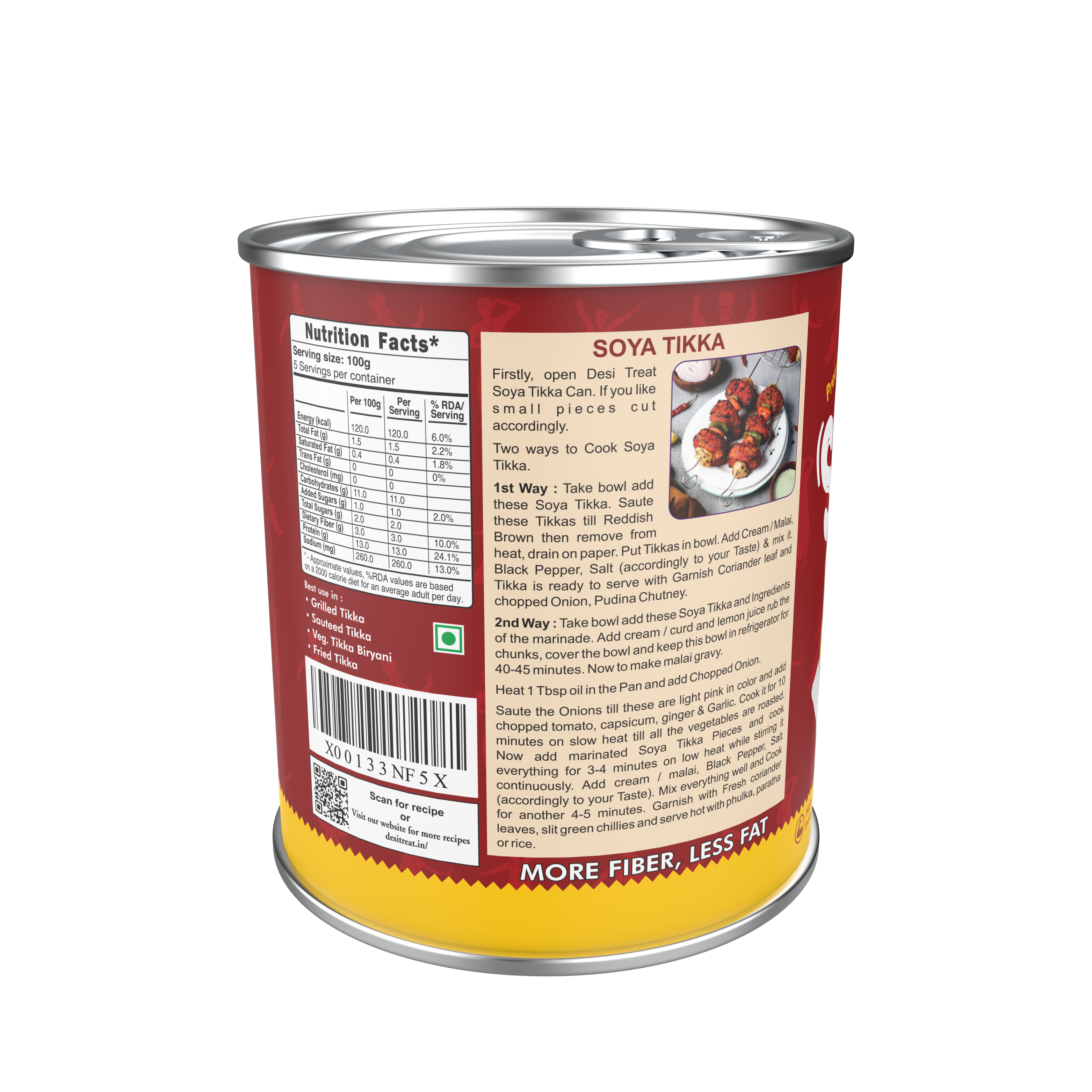 Desi Treat Punjabi Masala Soya Tikka:Enjoy the authentic flavors of Punjab with this ready-to-cook soy tikka. Marinated in traditional masala, it's perfect for grilling or frying.
