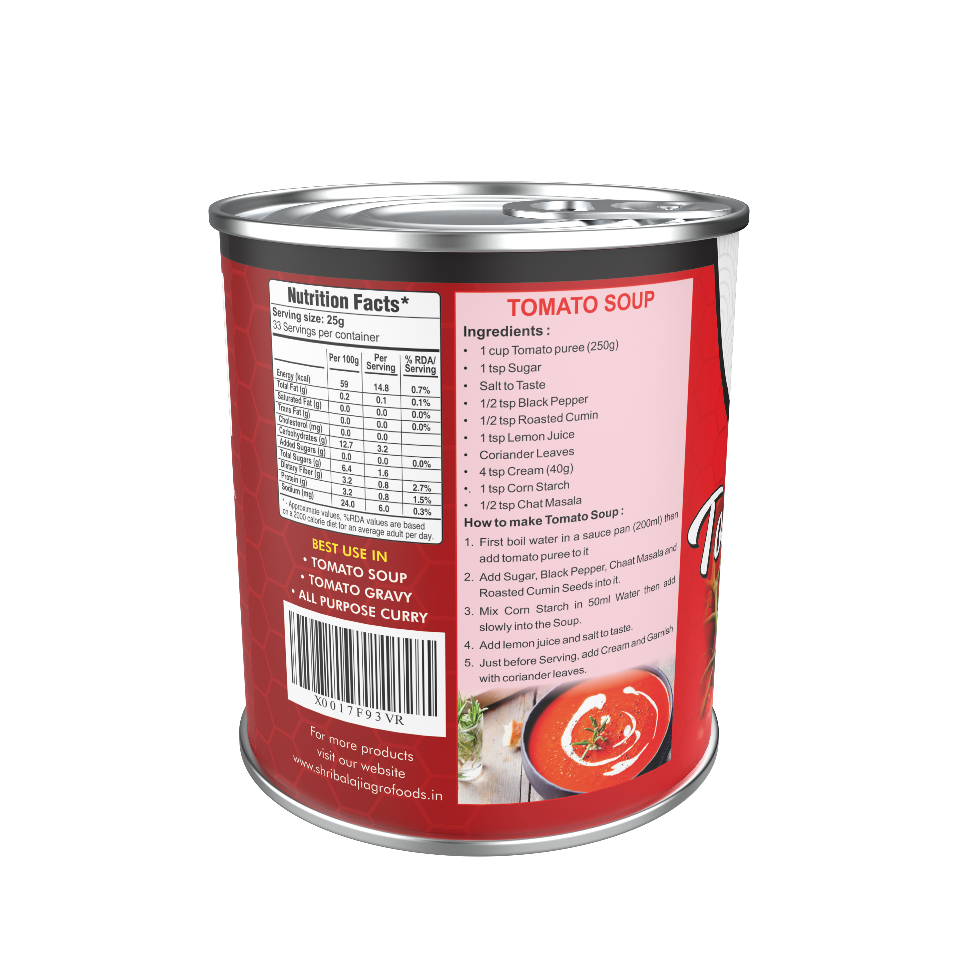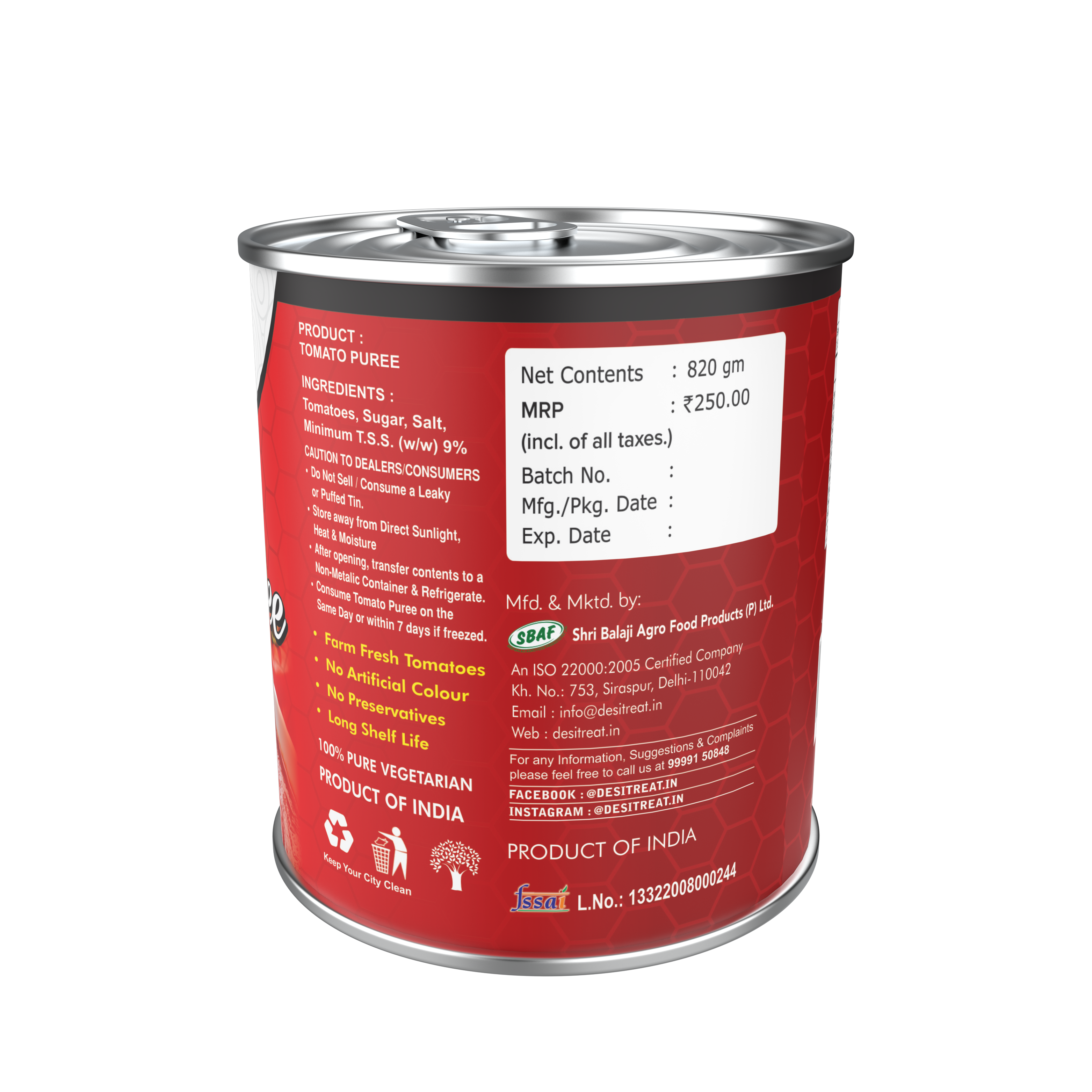 Tomato Puree: Experience the rich, fresh flavor of tomatoes, perfectly preserved in a convenient can. Our premium tomato puree is made from handpicked, ripe tomatoes, ensuring a delicious and authentic taste. Ideal for a variety of culinary creations, from sauces and soups to curries and marinades.